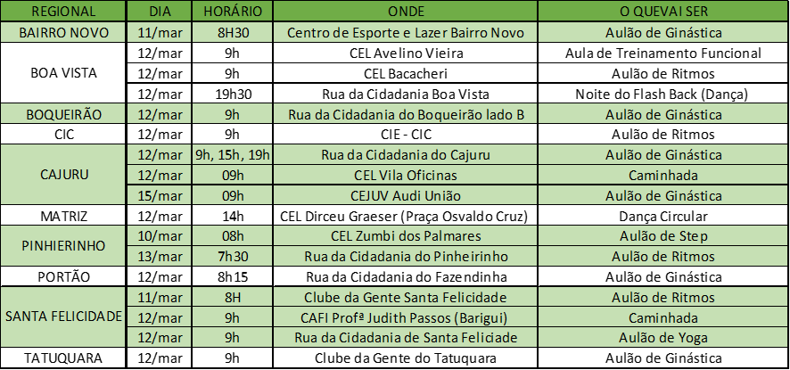 Confira também as atividades em cada uma das regionais de Curitiba abertas a população: